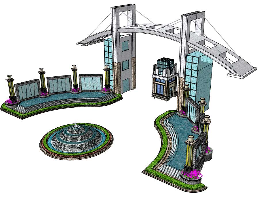 建标库图纸模型 > SKP模型 > 配景 > 多款现代大门入口模型3707121017