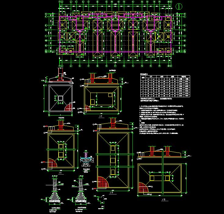说明:某多层住宅楼结构施工图,建筑结构的安全等级为二级,框架抗震等级为三级,地基基础设计等级为丙级,耐火等级为二级,抗震设防烈度为7度,设计基本地震加速度为0.15g,设计地震分组为第二组,主要结构形式为框架结构,建筑高度为19.8米,地上层数6层,总建筑面积为3514.59平方米。图纸内容含:结构说明,基础平面布置图,配筋图,楼梯详图,节点详图,单柱独立基础图等。