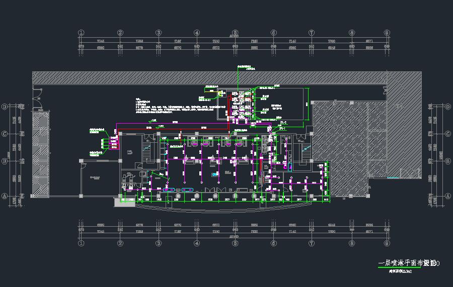 说明:某办公楼消防工程,含水、电气、七氟丙烷气体灭火,总建筑面积:5075平方米,建筑体积:19640立方,建筑高度:25米,地上7层,结构为框架结构。使用性质:银行办公使用。有天正建筑5.0版和T3版,供设计参考。 工程简介:项目中原设置有灭火器、应急照明、安全出口、疏散指示消火栓系统、等设备设施,本次为装饰装修二次设计改造,改造范围为1层至7层改造;按《建筑设计防火规范》GB50016-2019规定,增设消防自动灭火系统消火栓系统、喷淋系统;新建消防水池(V=300m3),消防水池建施由具备相应资质公司二次深化设计、消防水泵房、屋顶消防水箱(v=18m3),市政给水压约为0.16Mpa,由2根DN100给水管网引致消防水池。 图纸内容:消防设计说明、1~7层喷漆平面布置图、1~7层消火栓平面布置图、喷漆系统图、消火栓系统图、材料表、1~7层七氟丙烷气体灭火平面布置图、1~7层自动报警系统平面布置图、1~7层应急照明系统平面布置图、自动报警系统图、应急照明配电箱。