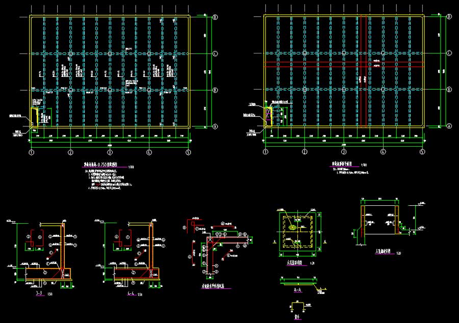 说明:某制药公司药粒制剂及配套项目多专业施工图(含计算书),包括消防水池、污水池、事故水池、罐区、辅料仓库、甲类仓库及外管,抗震设防烈度为7度。其中,罐区建筑高度为8.3米,地上层数1层,建筑面积为338平方米;辅料仓库建筑高度为15.15米,地上层数3层,建筑面积为3345.75平方米;甲类仓库建筑高度为5.5米,地上层数1层,建筑面积为472.41平方米。图纸内容含:建筑说明,平面图,立面图,剖面图,节点详图,门窗、楼梯、卫生间详图;给排水说明,罐区消防、给排水平面布置图,罐区屋面排水图,罐区泡沫液、给排水、雨水管道系统图,泡沫管道剖面及泡沫产生器大样图,阀门水封井、管架管道大样图,喷淋平面图,给排水及消防系统原理图及卫生间大样图;结构说明,基础平面布置图及详图,池底及池壁模板图,池顶走道板模板图,池顶钢栏杆布置图,池顶板、溢水槽模板图,剖面图,配筋图,切换井结构图,屋面及管道吊架结构平面布置图,基础详图,泵基础图,刚架节点详图,屋面檩条布置图及节点详图,楼梯详图,节点详图,钢栏杆标准图,管架平面布置图,柱脚节点详图,柱间支撑及梁柱、梁梁连接节点详图;电气说明,配电系统图,电机控制电路图,动力平面图,照明平面图,照明系统图,爆炸危险区域划分图,基础接地平面图,屋面防雷平面图,弱电系统图,弱电平面图,火灾报警系统图,防火门监控系统图,火灾报警平面图,消防电源监控系统图及电气火灾监控系统图,电机控制原理图,插座平面图,风机盘管平面图,动力箱系统图,插座及防火卷帘配电箱系统图,静电接地平面图;暖通说明,屋面风管、设备平面图,排风系统流程图;工艺管道设计与施工说明,工艺设备平面布置图,工艺管道及仪表流程图;外管说明,管道平立面布置图,管架平面布置图,管道保温、保冷施工图,蒸汽管道疏水装置安装图(架空敷设管道),管道材料一览表,管道流程图及图例,管道等级及材料选用表,管道静电接地图,管道放空,排液图等等。专业包括建筑、结构、给排水、电气、采暖通风、工艺。