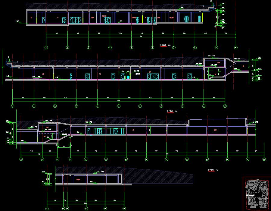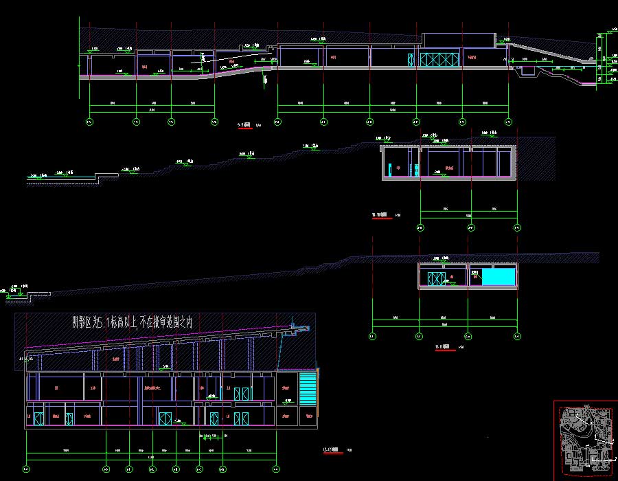 说明:某地下空间配套用房全专业施工图(无建筑说明),抗震设防烈度为7度,主要结构形式为钢筋砼框架结构,地上层数1层,地下层数为1层,总建筑面积为41066.2平方米。主要用途为地面景观、地下配套、地下车库。机动车停车总数227辆,为2类汽车库,其中无障碍车位5个,充电桩车位23个。图纸内容含:总平面图,防火分区示意图,平面图,立面图,剖面图,连通道详图,楼梯详图,汽车坡道详图,卫生间放大平面图,门窗详图,墙身详图,节点详图;给排水说明,给排水绿色建筑设计说明,室外给排水总平面图,消火栓管道系统原理图,自动喷淋管道系统原理图,给排水管道系统原理图,废水管道系统原理图,雨水管道系统原理图,给排水及消防平面图,喷淋平面图,消防水泵房给排水系统大样图、给排水平面大样图、基础平面大样图,卫生间给排水大样图;结构说明,钻孔灌注桩详图,桩位平面图,基础加固平面图,基础平面布置图,配筋平面图,承台详图,基础详图,配筋图,改建区域结构拆除图,配筋施工图,挡土墙大样及地下室外墙大样,改建区域墙、墙柱、梁、板、基础加固平面图,改建区域结构损伤修复说明,预应力详图,楼梯详图,变电所设备构架结构布置图,汽车坡道大样图,连通道大样图及止水带节点,剖面连通道大样图;电气说明,电气节能设计说明,绿色建筑设计专篇,10kV配电一次系统图,低压配电一次系统图,配电干线及电源浪涌保护器设置系统图,电涌保护器智能系统示意图,消防电源监控系统图,电气火灾监控系统图,智能能耗监测系统图,智能变配电站电力监控系统图,集中控制型消防应急照明和疏散指示系统设计说明,电气综合监控系统拓扑图,配电箱系统图,配电平面图,照明平面图,应急照明平面图,基础接地平面图,平面分区放大图,等电位平面图,变电所接地、照明、插座、布置图,总变电所平面、沟道布置图;暖通说明,空调水系统原理图,消防防排烟系统图,空调设备自动控制原理图,空调风管平面图,空调水管平面图,消防防排烟平面图,暖通平面图,空调机房详图,暖通标准详图,抗震支吊架标准节点详图,空调设备接管示意图等等。专业包括建筑、结构、给排水、电气、采暖通风。