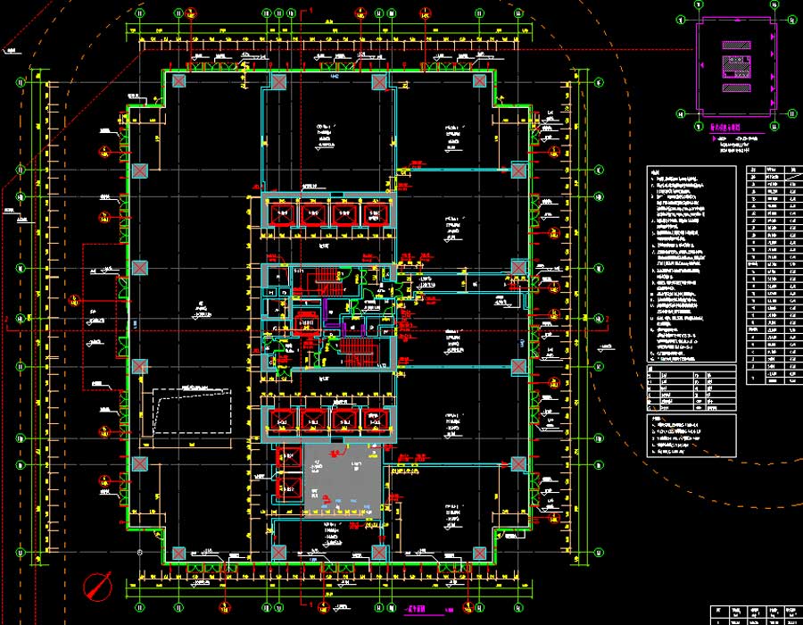 说明:多栋高层办公楼全专业施工图(含节能计算书、节能设计报审表、节能设计审查备案登记表),本项目总建筑面积188656.58平方米,其中总规定建筑面积142210平方米,地下车库面积为38419.96平方米,总车位数898辆。本项目有5栋楼及两层地下室组成,其中1栋为约117米27层超高层产业研发楼,2~4栋为约96米21层高层产业研发楼(裙房为产业配套等其他功能),5栋为约97米31层高层配套宿舍楼。图纸内容含:总平面竖向设计图,屋顶总平面图,建筑物定位图,消防总平面图,绿化专篇,道路平面图。建筑说明,平面图,立面图,剖面图,核心筒平面详图,楼梯剖面图,墙身详图,门窗表及门窗大样图,车库坡道大样,人防口部详图,人防楼梯详图,设备房大样,风井大样,地下室节点大样;给排水说明,消火栓系统图,自动喷水系统图,给水系统图,污废水系统图,雨水系统图,给排水、消火栓平面图,自动喷水平面图,卫生间给排水放大图;结构说明,混凝土板、梁、柱、剪力墙设计及构造说明,地下室结构设计说明,机械成孔扩底灌注桩设计说明,锚杆设计说明,砌体填充墙结构构造说明,混凝土楼梯设计及构造说明,人防地下室结构设计说明,墙柱平面定位图,墙柱配筋详图,结构平面布置及板配筋平面图,梁配筋平面图,楼梯详图;电气说明,火灾自动报警设计总说明,消防控制室大样图,火灾自动报警系统框图,消防疏散防火门监控系统图,消防设备电源监控系统图,漏电火灾监控系统图,地下部分火灾自动报警系统图,火灾自动报警系统图,电力总平面图,电话、网络系统图,有线电视系统图,可视对讲系统图,视频监控系统图,停车场管理系统图,室外弱电总平面图,10kV公共中压主接线示意图,10kV公共中压系统图,变配电室低压配电系统图,智能电力监测系统图,变配电室平面布置图、接地平面图 、剖面图 、竖向干线系统图,配电箱系统图,电气平面图,照明平面图,防雷平面图,弱电平面图.火灾自动报警平面图;暖通说明,空调通风防排烟平面图,空调水系统平面图,抗震支吊架设计说明及大样图,风管配件示意图,风机、空调箱、风机盘管安装示意详图,风管、水管安装示意详图,制冷系统原理图,末端空调水系统原理图,防排烟系统原理图,通风防排烟系统原理图等等。专业包括建筑、结构、给排水、电气、采暖通风。