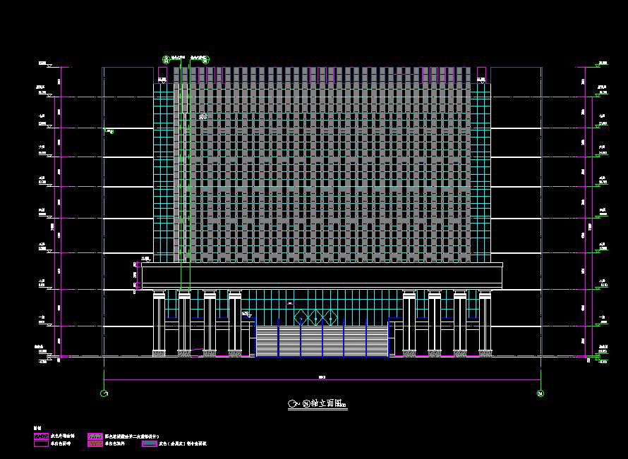 说明:某人民法院立案信访楼、审判综合楼、司法警察训练楼、门卫室项目,其中立案信访楼地上3层,建筑高度11.7m,地上总建筑面积1135.8㎡,审判综合楼地上8层,建筑高度31.9m,地上总建筑面积12613.7㎡,司法警察训练楼地上1层,建筑高度4.2m,地上总建筑面积246.62㎡,框架结构,门卫室地上1层,建筑高度3.7m,地上总建筑面积24.5㎡,砖混结构;图纸包含:建筑设计说明,总平面定位图,各层平面图,立剖面图,卫生间大样图,门窗表及门窗大样,楼电梯大样,节点大样等;结构设计总说明,基础平面布置图,基础梁平法施工图,装饰柱大样,基础大样,框架柱、剪力墙平法施工图,梁配筋图,结构平面布置与板配筋图等;给排水设计说明,各层给排水平面图,喷淋平面图,消火栓给水系统原理图,给水排水系统原理图,公卫大样,水箱集水井大样图,气体灭火系统图,水泵房大样图等;审判综合楼暖通设计说明,空调主要设备及材料表,各层通风平面图,空调设备及风道平面图,空调管道平面图,空调冷媒管系统原理图;电气设计总说明,火灾自动报警设计总说明,主要材料表 ,竖向配电系统图,配电系统图,低压配电系统图,各层配电平面图,消防平面图,消防主要材料表,消防自动报警系统图,防雷接地平面图等。专业包括建筑、结构、给排水、采暖通风、电气(采暖通风仅有审判综合楼施工图)