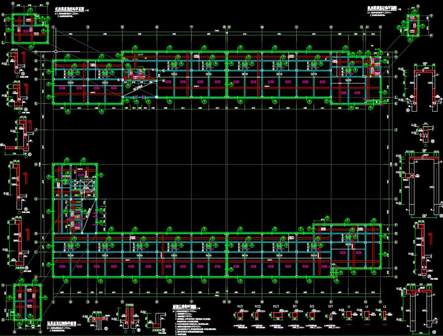 说明:某工业区4#厂房施工图,地上5层,地下1层,房屋高度为21m,框架结构,桩基基础,图纸包含:结构设计说明,结构设计说明附图,柱配筋平面图,结构平面图,梁配筋平面图,楼梯配筋图(缺地下室施工图)