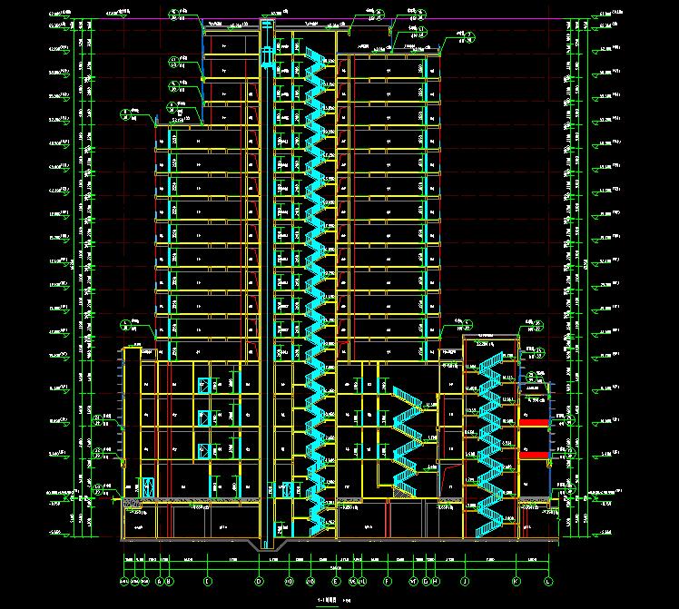 说明:本工程属于一类高层综合楼建筑,主要包含6#楼建筑施工图,1-5#、7-11#楼电气施工图,其中1-3#楼地上13层,建筑高度为66.55m,4-6#楼地上18层(6#楼地下1层),建筑高度为63.35、63.5、65.55m,7-11#楼单栋建筑面积为303.2㎡,7-10#楼为1层商业建筑,11#楼为1层垃圾房;图纸包含:6#楼建筑设计说明,目录,地上部分工程做法表,地下室工程做法表,节能设计说明,地下室平面图,地下室顶板平面图,各层平面图,立剖面图,核心筒放大平面图,楼梯大样图,扶梯大样图,地下室风井大样图,墙身大样图,地下室配电房大样图,门窗大样图;1-5#、7-11#楼电气设计说明,目录,主要设备材料表,竖向干线系统图,配电箱系统图,弱电系统图,强电平面图,弱电平面图,火警平面图,屋顶防雷平面图等