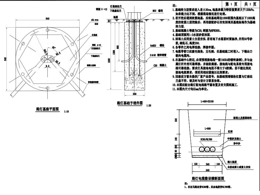 说明:某工业园区道路工程,道路全长为733.817m,道路宽度为18m,设计速度为20Km/h,道路等级为城市支路。图纸内容含设计说明、项目地理位置图、道路总体设计图、道路平面设计图、道路标准横断面设计图、道路纵断面设计图、直线、曲线及转角表、纵坡、竖曲线表、逐桩坐标表、道路用地图、清表回填与破除工程数量表、砍树挖根数量表、路基设计表、一般路基设计图、路基土石方(横断面设计图、数量计算表)、不良路基处理(数量表、平面图、设计图)、路面工程数量表、新老路面链接方式图、路面结构设计图、人行道铺装图、路基防护设计图、树池设计详图、无障碍设计大样图、交通工程说明书、交通标志标线(工程数量表、平面图)、交通工程标准横断面图、交通标准牌版面设计图、交通标线大样图、单柱式标志结构设计图、单悬臂式标志结构设计图、排水工程说明、排水系统图、排水工程数量表、管道综合横断面图、雨水,污水,排水管道横,纵断面图、雨水,污水,排水管道平面设计图、雨水,污水管道检查井表、井筒安全设计图、混凝土基础设计图、雨水管道开挖设计图、污水管道开挖图、交汇井大样图、管道上下交叉加固图、照明说明书、照明设计材料表、管线综合标准横断面图、道路照明平面图、双挑路灯设计大样图、路灯基础大样图、路灯手孔井大样图、绿化说明书、绿化工程数量表、绿化标准横断面图、绿化种植平面图等。