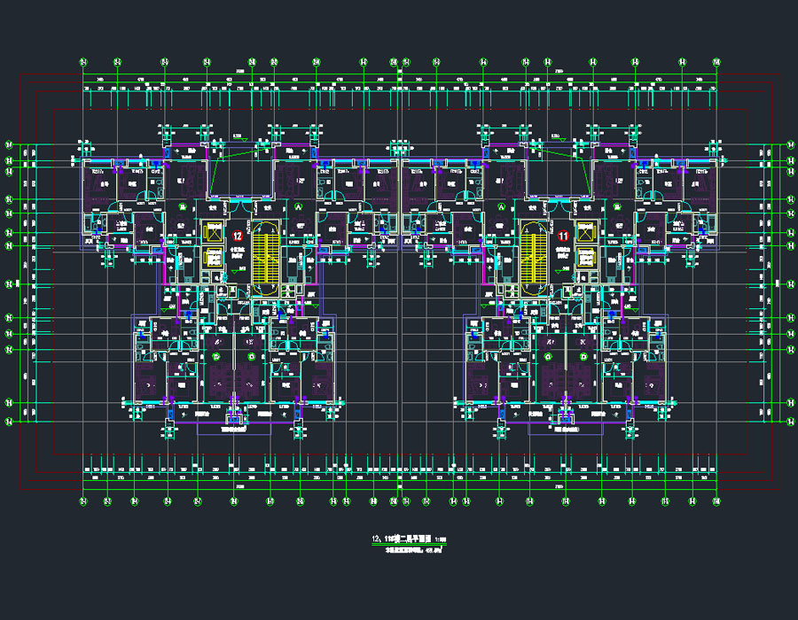 说明:该项目为某小区D组多栋住宅楼建筑施工图,D组包括9~13#楼及商业裙房,主要结构类型:短肢剪力墙、框架结构,总建筑面积为108534.47平方米,其中9~12#楼地上均为32层,建筑高度为95.3米;13#楼地上33层,建筑高度为98.2米;D组团地下室有3层。图纸包括: 建筑设计总说明,建筑装修及构造做法一览表,总平面图,地下楼层平面图,轴立面展开图,楼梯大样图,坡道大样图,楼层平面图,剖面图,楼核心筒大样等。