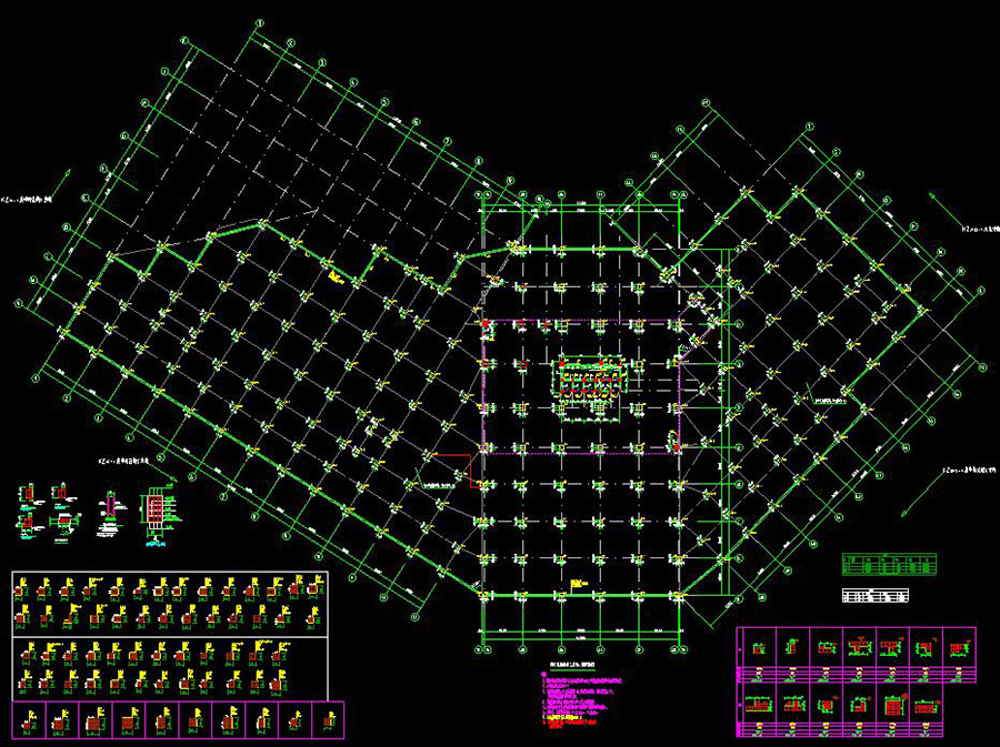 说明:酒店结构施工图,地上14层,地下3层,结构总高度为60.3m,结构型式为钢筋混凝土结构,结构体系为框架结构和框筒结构,桩基础,抗震设防烈度为6度;图纸包含:目录,结构设计总说明,基础平面布置图,地梁配筋图,柱、墙配筋图,地下层(X向、Y向)梁配筋图,各层梁板配筋图,楼梯大样图,消防水池施工图