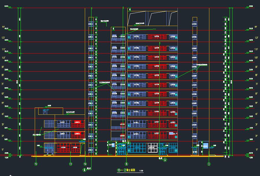 说明:某医院新建科教综合楼建筑、结构施工图,建筑基底面积:1685平方米,总建筑面积15740平方米,地下1层,地上12层(不包括屋顶机房层),建筑高度:58.1m。建筑结构形式为钢筋混凝土框架剪力墙结构,抗震设防烈度为7层,本工程地下室不设人防。图纸内容含建筑施工图说明、总平面图、各层平面图、立,剖面图、汽车坡道详图、楼梯详图、卫生间详图、墙身大样、内,外门窗数量表、工程做法、室内装修表和钢筋砼结构总说明、框架柱和剪力墙平面图、梁,板配筋平面图、楼梯详图(结构图缺地下室和基础部分图纸)。