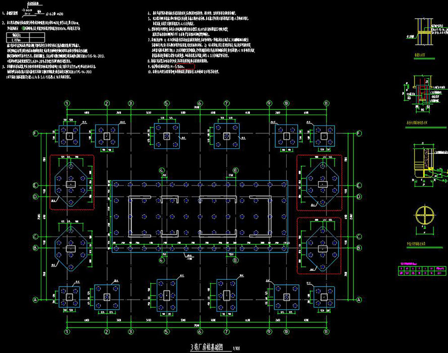 说明:本工程包含多栋高层厂房及两栋宿舍楼项目,其中1A#厂房地上22层,地下1层,房屋高度为97m,框架核心筒结构体系,1B#厂房地上12层,地下1层,房屋高度为60m,框架剪力墙结构体系,2、3、4#厂房地上20层,地下1层,房屋高度为96m,框架核心筒结构体系,5A#、5B#宿舍楼地上24层,地下2层,房屋高度为94.8m,部分框支剪力墙结构体系,抗震设防烈度为7度;图纸包含:结构设计总说明,桩基础图,钻(冲)孔桩说明及大样,承台大样图,边缘构件大样图,剪力墙通用大样及说明,柱墙平面图,柱墙详图,结构平面图,梁平法施工图,屋面梁平法施工图,机房屋面、构架梁平法施工图,楼梯大样图等