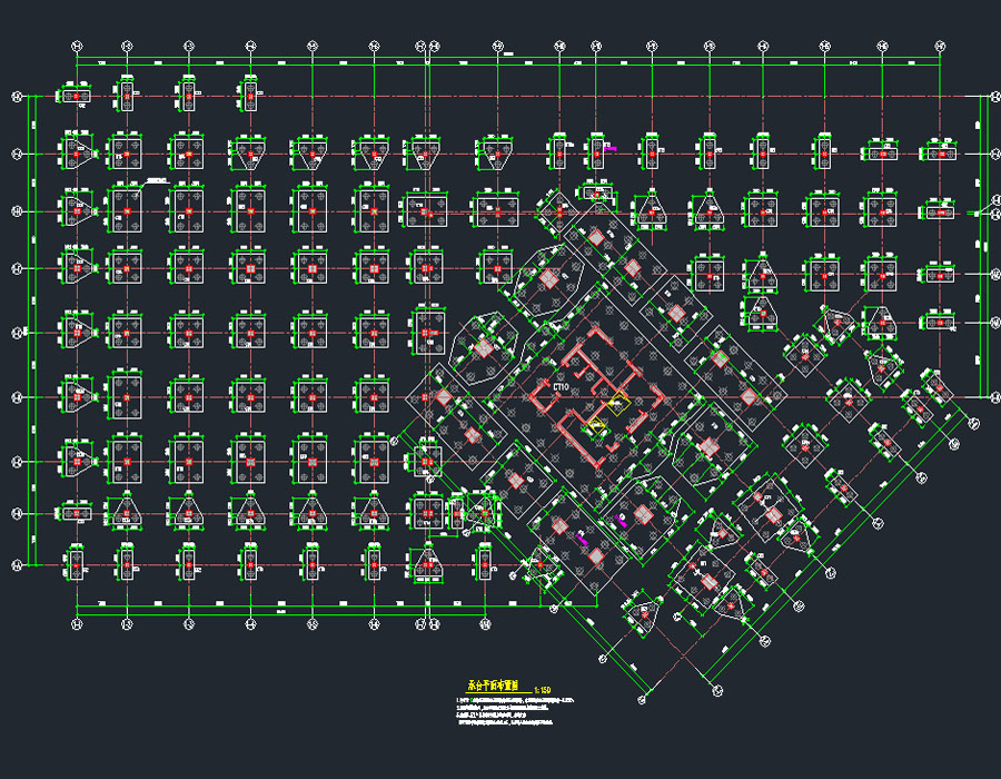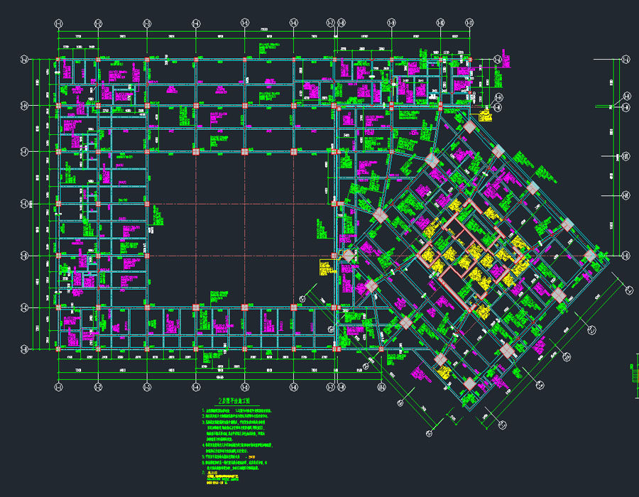 说明:本项目为某29层超高层写字楼框架结构施工图,地下2层,地上29层,建筑总高度为137.6米,主楼采用现浇钢筋混凝土框架-核心筒体系;裙楼为地上3层框架结构,建筑高度为16.5米。图纸包括:结构设计总说明,桩定位平面,承台平面布置图,承台大样图,底板结构布置平面,基础梁平面布置图,墙柱平面定位图,剪力墙边缘构建表,楼层结构平面,楼层梁平法施工图,设备层结构平面,避难层结构平面,裙楼钢结构屋面,梁内预应力筋,楼梯结构等。