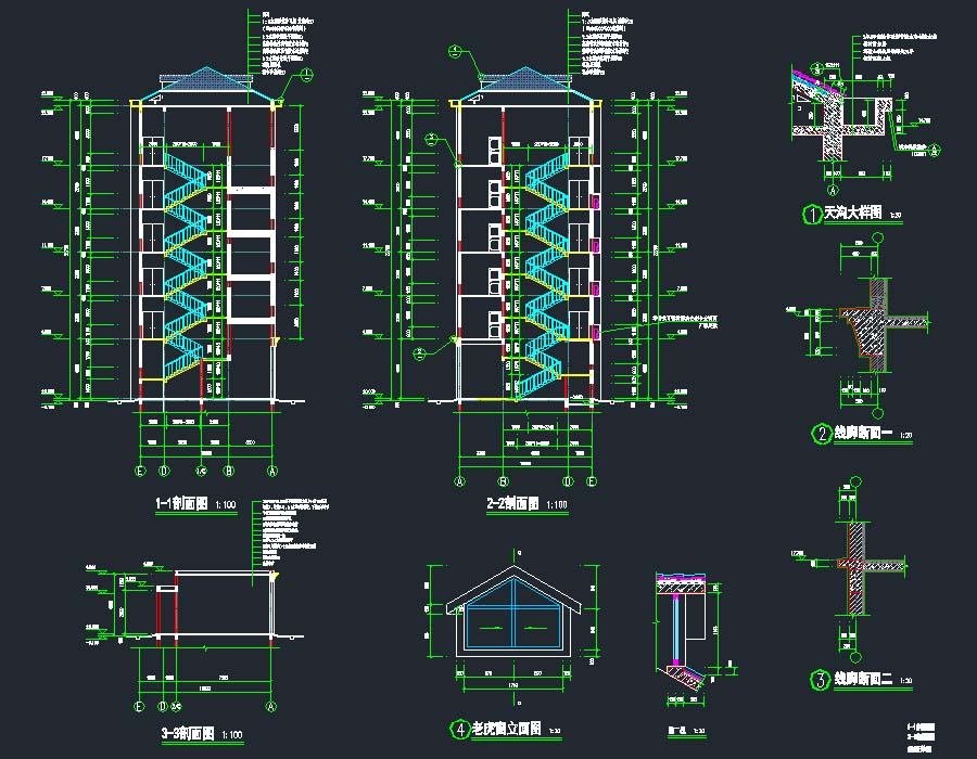 说明:该项目为某6层多层社区办公楼建筑、结构专业施工图,结构类型为框架结构,总建筑面积为1683.02平方米,地上6层(局部1层),总高度为24.02米。图纸包括:建筑设计总说明,工程质量常见问题专篇设计,总平面图、建筑装修做法一览表、外窗及幕墙物理性能选用等级、门窗总表,楼层平面图、厕所详图,正立面图、右侧立面图,左侧立面图、背立面图,剖面图、无沟大样图、线脚详图、老虎窗详图,楼梯详图、门窗详图;结构设计总说明,梁配筋平面图图例及框架梁构造详图,桩基平面布置图、桩基地梁配筋图、砌体墙身防潮构造,人工挖孔大样及桩表、桩基统一说明、承台配筋图,楼层柱布置图,楼面梁、板配筋图,窗台压顶,详图,梁、板转折构造、老虎窗平、立面图,楼梯结构图。