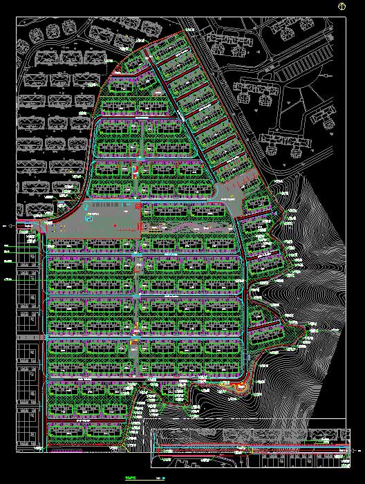 说明:该项目为某地景观设计施工图,景观设计面积 61035.46平方米。图纸内容含:景观设计说明,景观总平面图,景观分区索引总平面图,景观详图索引总平图,景观竖向平面图,景观挡墙及围墙定位及索引总平图,景观路沿石定位总平图,景观室外家具布置图,景观室外家具选型布置图,铺装平面图,索引平面图,竖向平面图,尺寸平面图,网格定位平面图,水景详图,特色矮墙做法详图,主入口铺装平面图,樱花树阵详图,入口平面图,休闲健身区详图,儿童活动场地详图,道路收边做法详图,停车位做法详图,入户院门详图,水、强弱电表箱详图,箱变装饰详图,装饰井盖板详图,植物种植施工说明,种植总平面图,入口道路种植平面图,上木种植平面图,中木种植平面图,球类种植平面图,点缀类种植平面图,下木种植平面图,分户绿篱平面图,植物汇总表,植物选型图,给排水设计说明,景观给水总平面图,景观排水总平面图,水景给水系统图,水景剖面图,水景给排水详图,水景给水系统图,泵坑做法详图,电气设计说明,照明配电系统图,景观照明配置平面图,电气安装大样图,喷泉水池局部等电位联结,景观灯具选型图,水景结施图,儿童活动区结构图等等。