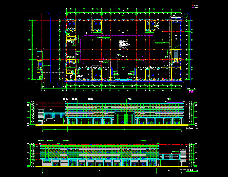 说明:机动车综合服务中心主要包含01栋商业、02栋综合交易大厅、03栋汽车修理、04栋汽车零配件、05栋配电房、06栋垃圾分类间、07栋门卫一、08栋门卫二,其中01栋商业地上3层,建筑高度16.9m,总体建筑面积17508.55㎡,02栋综合交易大厅地上3层,建筑高度14.6m,总体建筑面积6325.18㎡,03、04栋汽车修理、汽车零配件地上2层,建筑高度10.2m,总体建筑面积1346.5㎡,05栋配电房地上1层,建筑高度5.92m,总体建筑面积185㎡,06栋垃圾分类间地上1层,建筑高度4.35m,总体建筑面积40㎡,门卫室地上1层图纸包含:总平面图,建筑设计说明,工程做法表,公共建筑节能专篇,防排烟设计专篇(建筑专业),各层平面图,立剖面图,楼梯大样图,扶梯大样图,电梯大样图,机动车坡道平面大样图,机动车坡道剖面图,卫生间平面大样图,外包铝板样式平面大样图,墙身节点大样,门窗表门窗大样,幕墙大样;结构设计总说明,危险性较大的分部分项工程提示及说明,绿色设计专篇(结构),桩位平面布置图,承台平面布置图,柱平法施工图,梁平法施工图,板平法施工图,楼梯楼梯大样图,墙身节点大样,机动车坡道平面大样图,机动车坡道剖面图;给排水设计说明,给排水、消防抗震设计说明,室外生活、消防给水管道总图,室外生活、消防给水管道总图,给排水平面图,喷淋平面图,给排水、消防系统原理图、主要设备材料表 ,箱泵一体化消防增压给水设备大样图,卫生间给排水大样图;暖通设计总说明,防排烟设计专篇说明,公共建筑施工图绿色设计专篇(暖通空调),暖通抗震设计说明专篇,暖通平面图;电气设计说明,消防应急照明和疏散指示系统说明,火灾自动报警设计说明,防雷接地说明专篇,配电系统图,配电平面图,照明平面图,消防平面图,防雷接地平面图;基坑周边环境信息图,基坑支护设计与施工说明,基坑支护平面布置图,基坑支护剖面图,基坑支护大样图,基坑降水平面布置图,基坑监测平面布置图等幕墙、人防施工图