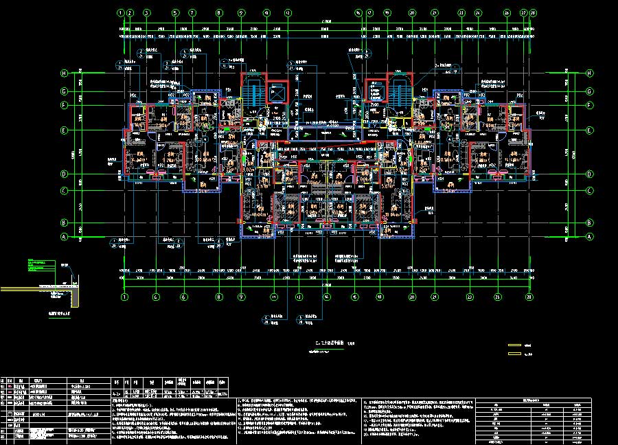 说明:该项目为某地多栋高层住宅楼建筑、结构、给排水、电气、采暖通风施工图(部分图纸显示不全,结构缺少部分图纸),项目包括2~12#、14#、16~24#住宅楼,25#幼儿园,S1~S5#商业及地下室。S1~S5#商业地上均为1层,建筑高度为3.15~4.95米,建筑面积为297.21~842.67平方米;16~24#住宅楼、25#幼儿园地上均为4层,建筑高度为13.2~15.75米,建筑面积为1244.38~6680.36平方米;8#、9#地上均为27层,地下均为1层,建筑高度分别为79.1、79.15米,建筑面积分别为11668.22、13145.01平方米;10#、11#地上均为30层,地下均为1层,建筑高度均为87.85米,建筑面积均为15748.1平方米;7#地上层数为32层,地下层数为1层,建筑高度为93.6米,建筑面积为14615.37平方米;5#、6#地上均为33层,地下均为1层,建筑高度均为96.5米,建筑面积均为14240.01平方米;2~4#、12#、14#地上均为34层,地下均为1层,建筑高度均为99.4米,建筑面积为14615.37~16587.55平方米;地下室为地下1层,建筑面积为39273.03平方米。图纸内容含:建筑:建筑说明,建筑节能设计说明,平面图,立面图,剖面图,楼梯大样图,户型放大平面图,墙身大样图,门头大样图,门窗表、门窗大样图,装配式说明;结构:结构说明,住宅工程质量常见问题专项治理结构专篇,装配式混凝土结构设计总说明,墙柱平面布置图,墙柱大样图,结构平面布置图,叠合板布置图,梁配筋图,楼梯大样,墙身大样;给排水:给排水说明,抗震支吊架设计说明,给水/消火栓系统原理图,排水系统原理图,给排水平面图,给排水及消防平面图;电气:电气说明,应急照明和疏散指示系统设计说明,弱电设计总说明,竖向配电系统图,配电箱系统图,火灾自动报警及联动控制系统图,三网融合系统图,屋顶层防雷平面图,配电平面图,照明平面图,应急照明平面图,火灾自动报警平面图,弱电平面图,精装户内电气平面图;暖通:暖通说明,通风、防排烟平面图等等。
