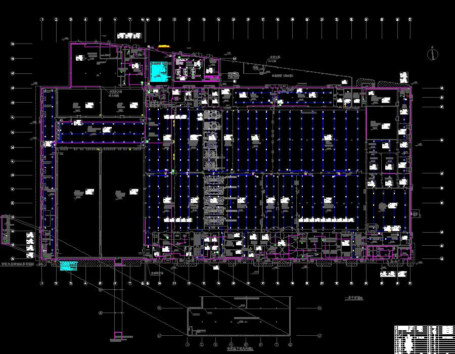 说明:该项目为某食品厂扩改建项目电气施工图,项目包括食品工厂,锅炉房,门卫1、产品体验中心,门卫2,宿舍楼。其中,食品工厂建筑高度为26.5/11.2米,地上层数1层,局部2层,建筑面积为40611.85平方米;宿舍楼建筑高度为29.85米,地上层数8层,建筑面积为5493.39平方米;锅炉房,门卫1、产品体验中心,门卫2地上层数均为1层,建筑高度为3.55~8.3米,建筑面积为15~531.78平方米。图纸内容含:电气说明,照明配电平面图,插座配电平面图,空调配电平面图,设备配电平面图,干线配电平面图,应急照明配电平面图,消火栓按钮平面图,监控网络平面图,屋顶弱电平面图,接地平面图,局部等电位平面图,防雷平面图,系统配电图,竖向干线图,楼梯间照明示意图,,电话网络系统图,闭路监控系统图,门禁、公共广播系统图,闭路监控安装节点图,室外电气说明,室外配电系统图,室外高低压干线平面图,室外弱电干线平面图,室外照明平面图,室外闭路监控系统平面图,,变电所布置平面图,氨制冷机房配电平面图,35kv配电系统图,低压系统图,柴油发电机系统图,配电单线图,氨制冷配电系统图等等。