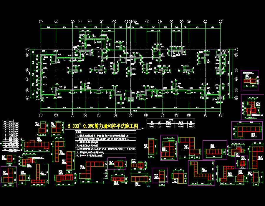 说明:该项目为某安置房项目多栋建筑楼结构施工图,其中,5#楼,地上11层,地下1层,总建筑面积49875.49平方米,主楼高29.65米,剪力墙结构;6#、7#、8#楼,地上11层,地下1层,总建筑面积均为49875.49平方米,主楼高32.6米,剪力墙结构。图纸内容含:结构设计总说明、桩位及承台平面布置图 桩基设计说明、防水板平面布置图、承台详图、剪力墙和柱平法施工图、梁平法施工图、结构平面布置图、墙身、楼梯施工图。