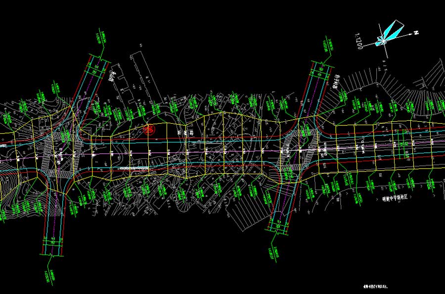 说明:该项目为某道路施工图,全长为1385.63m,路幅宽度为30m,道路等级为城市次干道,设计车速为40km/h,设计年限为15年。图纸内容含:设计说明,重力式挡土墙设计图,土方横断面图,土石方表,纵断面调整图,交叉口竖向设计图,纵断面图,标准横断面图,道路平面图,挡墙平面布置图,道路用地图,逐桩坐标表,道路平曲线表,典型横断面图,挂网喷浆护坡大样图,规划调整对比图,路堤、路堑骨架内草皮护坡一般构造图,路基边沟、截水沟、排水沟图,路面结构图,池塘清淤平面图,区位图,软土路基处理断面图,路基处理图(砂桩),砂桩处理平面图,无障碍设计图,钢筋混凝土挡土墙断面图,钢筋混凝土挡土墙设计图等等。