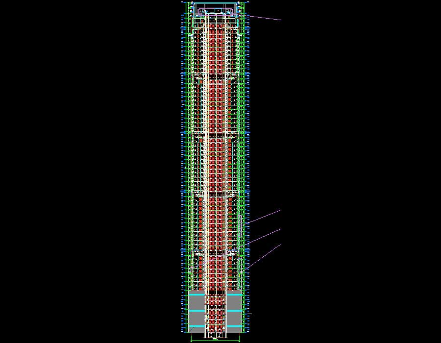 说明:该项目为某地块多栋住宅楼及车库全专业施工图,其中,1号住宅楼,总建筑面积72637.65平方米,地上64层,地下4层,高243米,总套数572套,主要结构类型:框架-核心筒结构;2号住宅楼,总建筑面积21720.06平方米,地上28层,地下4层,高92.45米,总套数275套,主要结构类型:剪力墙结构;3号高层裙房商业,总建筑面积14450.32平方米,地上4层,高19.8米,商铺数95间,主要结构类型:剪力墙结构;车库,总建筑面积26854.64平方米,地下4层,高14.7米,总车位数507个,主要结构类型:剪力墙结构。图纸内容含:总平面及竖向布置图、绿化布置图、消防扑救布置图、综合管网平面布置图、建筑施工图总说明、室内外装修构造做法表、地下室装修构造做法表、门窗大样、门窗统计表、建筑平面图、立面图、剖面图、楼梯平面大样图、电梯楼梯剖面大样图、套内楼梯大样图、墙身大样、通用节点、栏杆大样、雨棚大样、烟道转换示意图、建筑节能设计说明专篇、保温范围图、地下室建筑施工图设计总说明、室内外装修构造做法表、组合平面图、车库顶板平面图、防火分区示意图、预留预埋图、剖面图、坡道大样图、楼梯大样图、风井大样图、设备房大样图、门窗大样图、地下室大样、消防控制室建筑节能设计说明专篇、消防控制室负一层保温范围图、消防控制室屋面保温范围图、结构施工图设计总说明、柱墙布置图、核心筒平法施工图、平面布置图、板平法施工图、梁平法施工图、楼梯大样图、预制楼梯大样、墙身大样、地下室结构施工图设计总说明、基础平面布置及梁配筋图、筏板配筋图、基础说明及大样、主要剖面、柱墙布置图、柱墙配筋大样、核心筒平法施工图、板平法施工图、梁平法施工图、楼梯大样、坡道大样、电气主要设备及材料表、电气设计总说明、电气消防设计专项说明、强电竖向干线系统图、配电箱系统图、火灾自动报警系统图、防火门、消防电源、电气火灾监控系统图、网络通信系统图、能耗监测系统图、有线电视系统图、配电干线平面图、照明平面图、消防平面图、防雷平面图、电气总平面图、主要设备材料表、地下车库电气设计总说明、电气消防设计专项说明、10KV开闭所高压配电系统图、10KV高压环网柜系统图、低压配电系统图、设备房布置及接地平面图、设备房剖面图、车库配电干线系统图、配电箱系统图、消防水泵配电箱系统图等等及给排水、暖通、节能、绿建专业施工图及效果图。