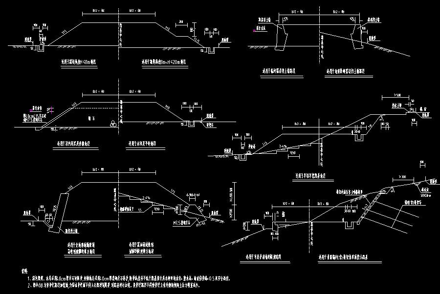说明:该项目为某道路工程施工图,路线全长6.056136公里,设计速度40公里/小时,2车道,路基宽度8.5米。图纸内容含:设计说明,路基标准横断面图,路基一般设计图,超高方式图,高填一般设计图,低填浅挖路基处理设计图,台背填透水性材料设计图,陡坡路基一般设计图,填挖交界处理设计图,不良地基换填处理设计图,山凹地段地下水排水设计图,路基稳定监控设计图,路基每公里土石方数量表,取土场、弃土场处理工程数量表,路基挡墙数量汇总表,挡墙墙背排水工程数量汇总表,路肩墙路床顶面排水数量汇总表,左侧挡土墙设计图,路肩挡土墙墙顶护栏基础加固设计图,墙背排水设计图,挡土墙防撞护栏钢筋图,防护设计图,路堤拱骨防护设计图,路堤坡面铺砌边坡防护设计图,路堑生态防护设计图,路基防护设计图(护肩及护脚),路面边部大样图,排水平孔结构图,排水系统布置图,路基排水图等等。