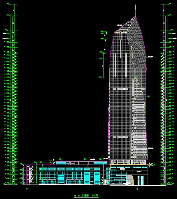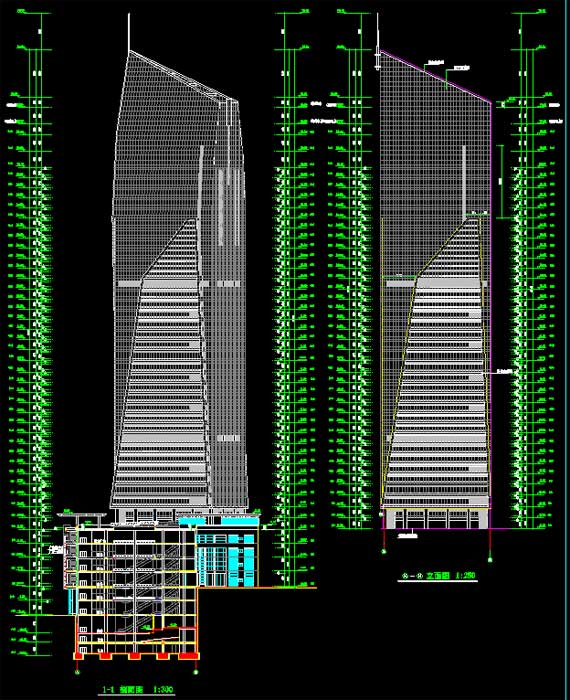 说明:该项目为重庆市英利大厦,使用性质为超高层综合性商业办公建筑,由塔楼与裙楼组成,塔楼地上42层,裙楼地上4层,地下均为3层,建筑总高度186米,总建筑面积102488平方米,结构体系为框筒与框架结构,设计使用年限50年。该图纸包括大厦建筑专业图纸,给排水专业图纸,暖通专业图纸,电气专业图纸。